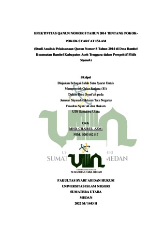 Azmi, Mhd.Chairul (2022) Efektivitas Qanun Nomor 8 Tahun 2014 tentang Pokok-Pokok Syari`at Islam (Studi Analisis Pelaksanaan Qanun Nomor 8 Tahun 2014 di Desa Bambel Kecamatan Bambel Kabupaten Aceh Tenggara dalam Perspektif Fikih Siyasah). Skripsi thesis, Universitas Islam Negeri Sumatera Utara.