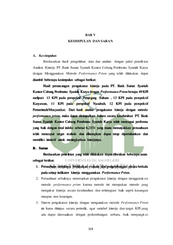Analisis Kinerja PT. Bank Sumut Kantor Cabang Pembantu Syariah Karya dengan Menggunakan Metode Performance Prism