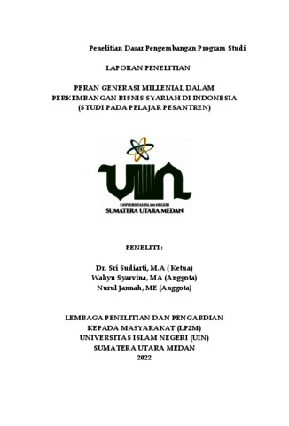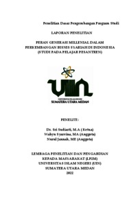 Sri Sudiarti, and Wahyu Syarvina, and Nurul Jannah, PERAN GENERASI MILLENIAL DALAM PERKEMBANGAN BISNIS SYARIAH DI INDONESIA (STUDI PADA PELAJAR PESANTREN). LEMBAGA PENELITIAN DAN PENGABDIAN KEPADA MASYARAKAT (LP2M) UNIVERSITAS ISLAM NEGERI (UIN) SUMATERA UTARA MEDAN.
