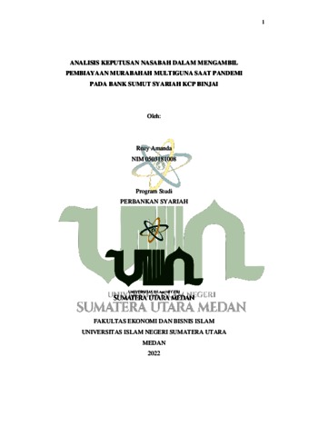 Amanda, Rozy (2022) Analisis Keputusan Nasabah Dalam Mengambil Pembiayaan Murabahah Multiguna Saat Pandemi Pada Bank Sumut Syariah KCP Binjai. Skripsi thesis, Universitas Islam Negeri Sumatera Utara.