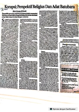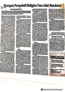 Effendi, Erwan (2011) Korupsi, Prespektif Religius Dan Adat Batubara. Waspada. ISSN 0215-3017