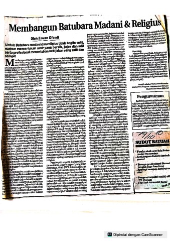 Efendi, Erwan Membangun Batubara Madani & Religius. Waspada. ISSN 0215-3017