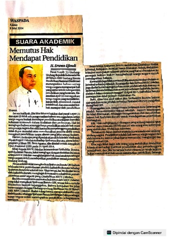 Efendi, Erwan (2014) Memutus Hak Mendapat Pendidikan. Waspada. ISSN 0215-3017