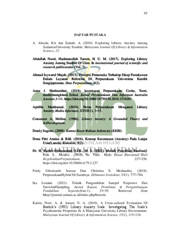 Uncontrolled Keywords: Library Anxiety, Pustakawan, Perpustakaan dan Kearsipan Daerah Kota Langsa.