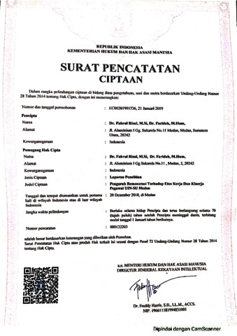 Rizal, Fahrul and Faridah, Faridah (2018) HAKI Pengaruh Remonerasi Terhadap Etos Kerja Dan Kinerja Pegawai UIN-SU Medan. Universitas Islam Negeri Sumatera Utara.