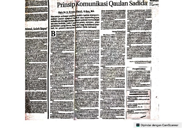 Efendi, Erwan (2022) Prinsip Komunikasi Qaulan Sadida. Waspada. ISSN 0215-3017