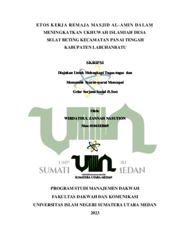 Nasution, Wirdathul Zannah (2023) Etos Kerja Remaja Masjid Al-Amin Dalam Meningkatkan Ukhuwah Islamiah Desa Selat Beting Kecamatan Panai Tengah Kabupaten Labuhanbatu. Skripsi thesis, Universitas Islam Negeri Sumatera Utara.