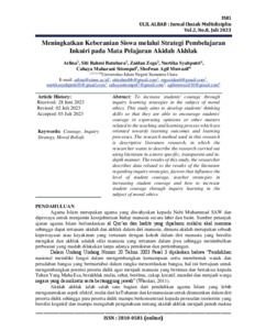 To increase students' courage through inquiry learning strategies in the subject of moral ethics. This study aims to develop students' thinking skills so that they are able to encourage students' courage in expressing opinions or other matters related to the teaching and learning process which are oriented towards learning outcomes and learning processes. The research method used in this research is descriptive literature research, in which the researcher wants to describe the research carried out using literature in a more specific, transparent and indepth manner. The results of this study, the researcher describes data related to the results of the literature regarding inquiry strategies, factors that influence the level of student courage, teacher strategies in increasing student courage and how to increase student courage through inquiry learning in the subject of moral ethics.
