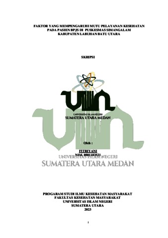 Fitriyani, Fitriyani (2023) Faktor yang Mempengaruhi Mutu Pelayanan Kesehatan Pada Pasien BPJS di Puskesmas Simangalam Kabupaten Labuhan Batu Utara. Skripsi thesis, Universitas Islam Negeri Sumatera Utara.