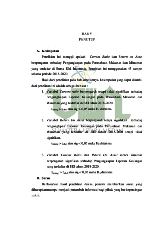 | Uncontrolled Keywords: | Current Ratio, Return On Asset, Pengungkapan |