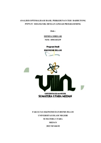 Siregar, Ernida (2023) Analisis Optimalisasi Hasil Perkebunan Teh Bahbutong PTPN IV Sidamanik Dengan Linear Programming. Skripsi thesis, Universitas Islam Negeri Sumatera Utara.