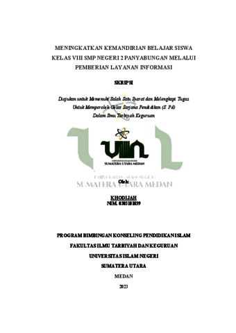 Khadijah, Khadijah (2023) Meningkatkan Kemandirian Belajar Siswa Kelas VIII SMP Negeri 2 Panyabungan Melalui Pemberian Layanan Informasi. Skripsi thesis, Universitas Islam Negeri Sumatera Utara.
