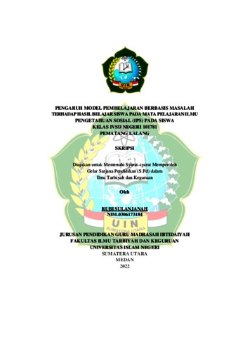 Sulanjanah, Rubi (2022) Pengaruh Model Pembelajaran Berbasis Masalah Terhadap Hasil Belajar Siswa Pada Mata Pelajaran Ilmu Pengetahuan Sosial (IPS) Siswa Kelas 4 SD Negeri 101781 Pematang Lalang. Skripsi thesis, Universitas Islam Negeri Sumatera Utara.