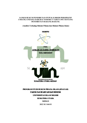 Simbolon, Atikah Az-Zahra (2022) Sanksi Hukum Penimbunan Pupuk Subisidi Perspektif Undang-Undang Darurat Nomor 17 Tahun 1951 Tentang Penimbunan Barang-Barang (Analisis Terhadap Hukum Pidana dan Hukum Pidana Islam). Skripsi thesis, Universitas Islam Negeri Sumatera Utara.