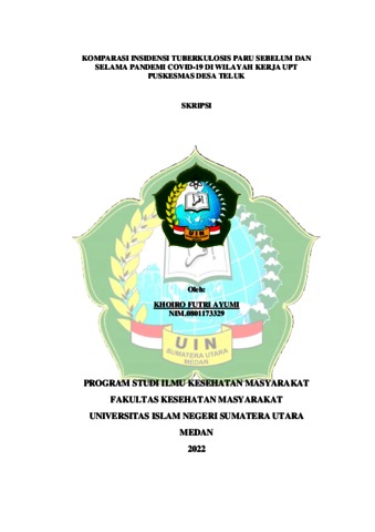 Ayumi, Khoiro Futri (2022) Komparasi Insidensi Tuberkulosis Paru Sebelum dan Selama Pandemi COVID-19 di Wilayah Kerja UPT Puskesmas Desa Teluk. Skripsi thesis, Universitas Islam Negeri Sumatera Utara.