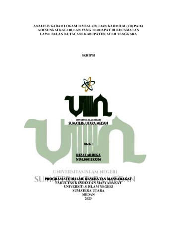 Ardika, Rizki (2023) Analisis Kadar Logam Timbal (Pb) dan Kadmium (Cd) Pada Air Sungai Kali Bulan Yang Terdapat di Kecamatan Lawe Bulan, Kutacane, Kabupaten Aceh Tenggara. Skripsi thesis, Universitas Islam Negeri Sumatera Utara.