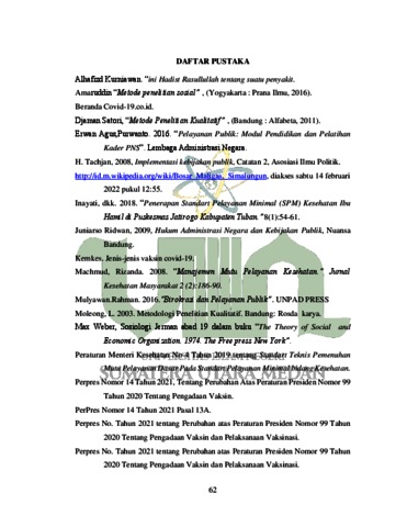 S, Siska Hendrawan (2022) Birokrasi Pemerintahan dan Pelayanan Publik (studi kasus pemberian Vaksin Covid-19 di Kecamatan Bosar Maligas). Skripsi thesis, Universitas Islam Negeri Sumatera Utara.