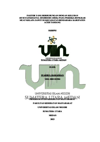 Ramadhan, Syahrul (2023) Faktor Yang Berhubungan Dengan Keluhan Musculoskeletal Disorders (MSDs) Pada Pekerja Bongkar Muat Kelapa Sawit Di Kecamatan Bendahara Kabupaten Aceh Tamiang. Skripsi thesis, Universitas Islam Negeri Sumatera Utara.