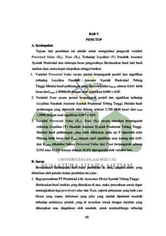 Pengaruh perceived value dan trust terhadap loyalitas nasabah asuransi syariah prudential (Studi Kasus PT Prudential Life Assurance Divisi Syariah Tebing Tinggi
