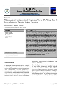 Fithriani, Rahmah Utilizing Artificial Intelligence-based Paraphrasing Tool in EFL Writing Class: A Focus on Indonesian University Students’ Perceptions. Scope: Journal of English Language Teaching.