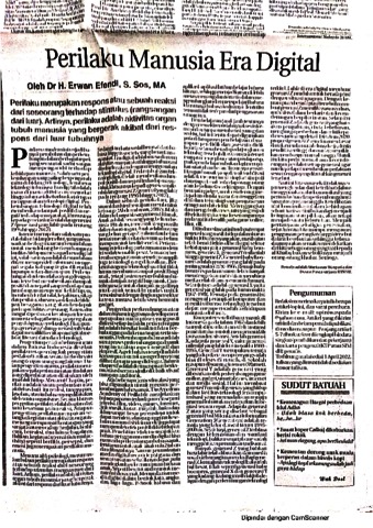 Efendi, Erwan (2023) Perilaku Manusia Era Digital. Waspada. ISSN 0215-3017