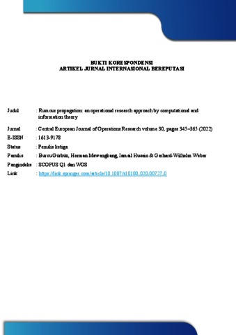 Gurbuz, Burcu and Mawengkang, Herman and Husein, Ismail and Weber, Gerhard Wilhelm (2021) Rumor Propagation - An Operational Research Approach By Computational And Information Theory. Central European Journal Of Operations Research.