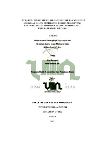 Suryanti, Ade (2022) Strategi Komunikasi Organisasi Gerakan Sumut Mengajar dalam Membentuk Remaja Masjid yang Berakhlakul Karimah di Kecamatan Sibolangit Kabupaten Deli Serdang. Skripsi thesis, Universitas Islam Negeri Sumatera Utara.