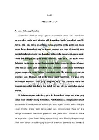 Penelitian ini bertujuan untuk mengetahui bagaimana strategi komunikasi yang diterapkan oleh Organisasi Gerakan Sumut Mengajar dalam membentuk remaja masjid yang berakhlakul karimah di Kecamatan Sibolangit Kabupaten Deli Serdang serta apa saja hambatan dan solusi dari penerapan strategi tersebut. Penelitian ini menggunakan jenis penelitian kualitatif dengan metode analisis deskriptif. Teknik pengumpulan data dilakukan dengan observasi partisipatif, wawancara dan studi dokumentasi. Hasil penelitian ini: (1) Strategi Komunikasi menggunakan beberapa metode, yaitu: metode diskusi, metode nasihat, metode kebiasaan, metode kaderisasi dan metode media dakwah. (2) Penerapan yang dilakukan terbagi menjadi dua upaya, yakni upaya pencegahan dan upaya penyembuhan. Upaya pencegahan dilakukan untuk mengatasi adanya kenakalan remaja masjid dengan membuat kegiatan-kegiatan positif, dimana kegiatan ini lebih mengutamakan kebersamaan antara para remaja masjid sehingga memiliki lebih banyak waktu untuk berada di lingkungan masjid. Upaya penyembuhan ditujukan untuk remaja yang sudah terlanjur bermasalah. Langkah yang diambil adalah melalui pendekatan secara personal. (3) Hambatan yang dialami berupa minimnya sumber daya manusia, minimnya kendaraan umum dan faktor cuaca yang inkonsisten. Maka solusi dari adanya hambatan tersebut dengan melakukan pergerakan Door to Door yaitu langsung mengunjungi remaja masjid dari satu rumah ke rumah lainnya