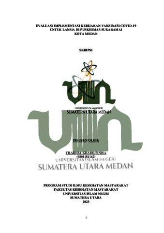 Khairunnisa, Thariqa (2023) Evaluasi Implementasi kebijakan vaksinasi Covid-19 untuk lansia di Puskesmas Sukaramai Kota Medan. Skripsi thesis, Universitas Islam Negeri Sumatera Utara.