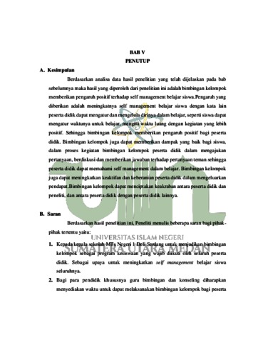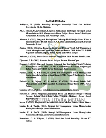 | Uncontrolled Keywords: | Layanan Bimbingan Kelompok dengan Menggunakan Teknik Self Management untuk Meningkatkan Kedisiplinan Belajar |