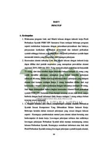 Penelitian ini bertujuan untuk mengetahui bagaimana pelaksanaan program link and match lulusan dengan industri kerja prodi Perbankan Syariah FEBI UIN Sumatera Utara, kesesuaian alumni terhadap link and match lulusan dengan industri kerja serta kendala dan solusi mempercepat serapan Alumni Perbankan Syariah sesuai kompetensi yang dibutuhkan dalam industri kerja. penelitian ini merupakan penelitian lapangan dengan menggunakan pendekatan kualitatif, teknik pengumpulan data yang digunakan adalah wawancara, kuesioner dan dokumentasi. teknik analisis data menggunakan analisis reduksi data, penyajian data dan penarikan kesimpulan. berdasarkan hasil penelitian maka diperoleh kesimpulan bahwa (1) program link and match lulusan dengan industri kerja prodi Perbankan Syariah terdapat beberapa program: melakukan kerjasama dengan industri perbankan dan lainnya, penyusunan kurikulum melibatkan stakholeder (2) kesesuaian alumni terhadap link and match lulusan dengan industri kerja diketahui terdapat 33 orang yang sudah memiliki pekerjaan, sedangkan yang belum memiliki pekerjaan sebanyak 40 orang. dilihat dari segi informasi (link) terdapat hanya 1 orang dilihat dari segi kesesuaian (match) terdapat 20 orang. bahwa tingkat kesesuaian alumni prodi perbankan syariah hampir terserap secara maksimal, tetapi dalam link belum terserap secara maksimal. (3) kendalanya seperti :kurangnya pembentukan mental, lowongan pekerjaan terbatas, kurangnya sosialisasi informasi (link) pekerjaan dari prodi perbankan syariah dan kurangnya sofkill yang dimiliki alumni.sedangkan solusinya yaitu: memperbaikin sistem pembelajaran, memperhatikan tentang kerjasama dengan industri perbankan syariah dan lainnya serta dari individu alumni juga harus mempunyai peran untuk menyelasaikan link and match.