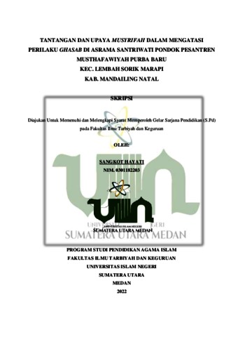 Hayati, Sangkot (2022) Tantangan dan Upaya Musyrifah dalam Mengatasi Perilaku Ghasab di Asrama Santriwati Pondok Pesantren Musthafawiyah Purba Baru Kec. Lembah Sorik Marapi Kab. Mandailing Natal. Skripsi thesis, Universitas Islam Negeri Sumatera Utara.
