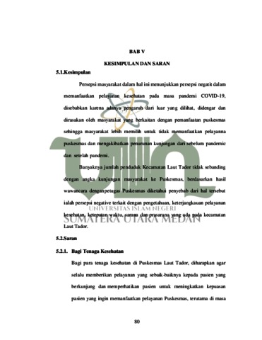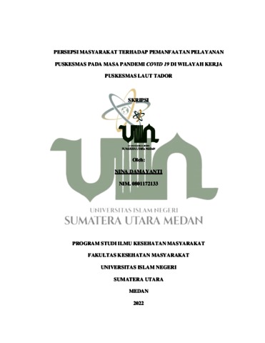 Damayanti, Nina (2022) Persepsi masyarakat Terhadap Pemanfaatan Pelayanan Puskesmas pada Masa Pandemi Covid-19 di Wilayah Kerja Puskesmas Laut Tador. Skripsi thesis, Universitas Islam Negeri Sumatera Utara.