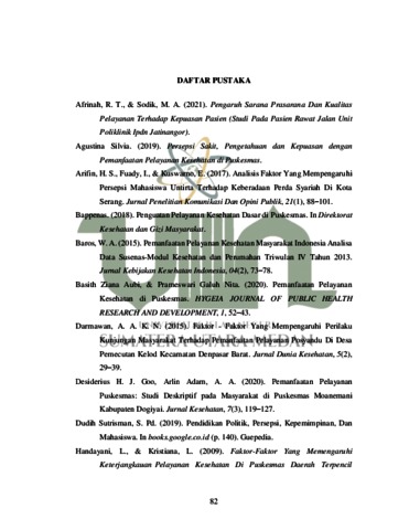 | Uncontrolled Keywords: | Persepsi, Pelayanan Kesehatan, Covid 19, Faktor |