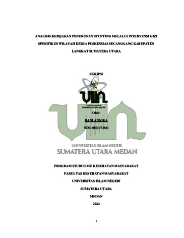 Annika, Rani (2022) Analisis Kebijakan Penurunan Stunting Melalui Intervensi Gizi Spesifik Di Wilayah Kerja Puskesmas Secanggang Kabupaten Langkat Sumatera Utara. Skripsi thesis, Universitas Islam Negeri Sumatera Utara.