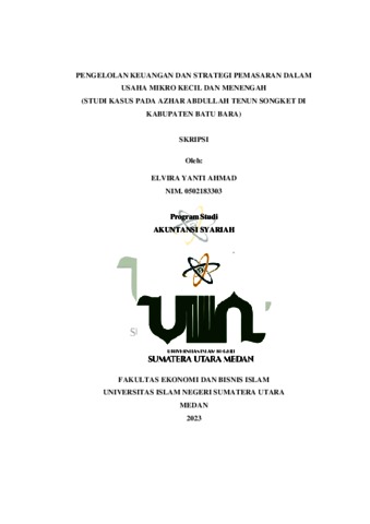 Ahmad, Elvira Yanti (2023) Pengelolaan Keuangan dan Strategi Pemasaran Dalam Usaha Mikro Kecil Dan Menengah (Studi Kasus Pada Azhar Abdullah Tenun Songket di Kabupaten Batu Bara). Skripsi thesis, Universitas Islam Negeri Sumatera Utara.