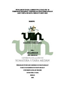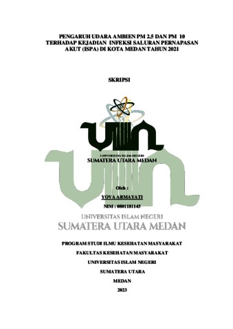 Armayati, Yova (2023) Pengaruh Udara Ambien PM 2.5 dan PM 10 Terhadap Kejadian Infeksi Saluran Pernapasan Akut (ISPA) Di Kota Medan Tahun 2021. Skripsi thesis, Universitas Islam Negeri Sumatera Utara.