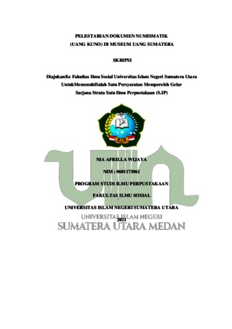 Wijaya, Nia Afrilla (2021) Pelestarian Dokumen Numismatik (Uang Kuno) Di Museum Uang Sumatera. Skripsi thesis, Universitas Islam Negeri Sumatera Utara.