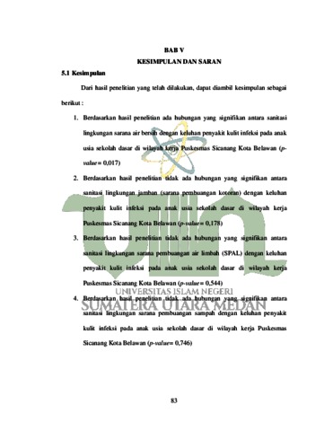 Saragih, Putri Indah Sari (2023) Hubungan Sanitasi Lingkungan Dan Personal Hygiene Dengan Keluhan Penyakit Kulit Infeksi Pada Anak Usia Sekolah Dasar Di Wilayah Kerja Puskesmas Sicanang Kota Belawan. Skripsi thesis, Universitas Islam Negeri Sumatera Utara.