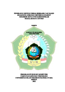 Habibi, Rahmat Syair (2022) Penerapan Sistem Cerdas Berbasis Case Based Reasoning (CBR) Dan Metode K-Nearest Neighbor (KNN) Untuk Identifikasi Masalah Data Center. Skripsi thesis, Universitas Islam Negeri Sumatera Utara.