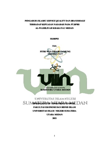 Tanjung, Fitri Wulandari (2021) Pengaruh Islamic Service Quality dan BrandImage terhadap Kepuasan Nasabah Pada PT. BPRS Al-Washliyah Krakatau Medan. Skripsi thesis, Universitas Islam Negeri Sumatera Utara.