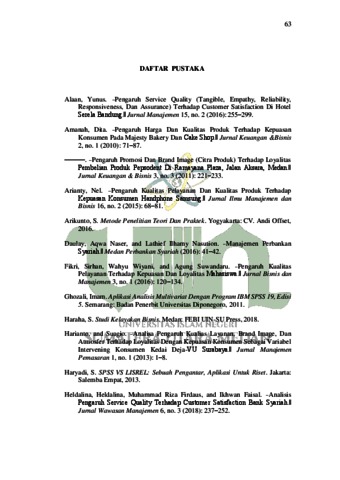 Uncontrolled Keywords: Islamic Service Quality, BrandImage, Kepuasan Nasabah