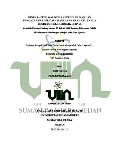 Kinerja Pegawai Dinas Kependudukan dan Pencatatan Sipil dalam Pelayanan Kartu Tanda Penduduk Elektronik (KTP-el) (Analisis Undang-Undang Nomor 25 Tahun 2009 Tentang Pelayanan Publik di Kabupaten Simalungun ditinjau dari Fiqh Siyasah)