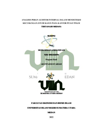 Adriansyah, Muhammad (2022) Analisis Peran Auditor Internal Dalam Mendeteksi Kecurangan (Studi Kasus Pada Kantor Pusat PDAM Tirtanadi Medan). Skripsi thesis, Universitas Islam Negeri Sumatera Utara.
