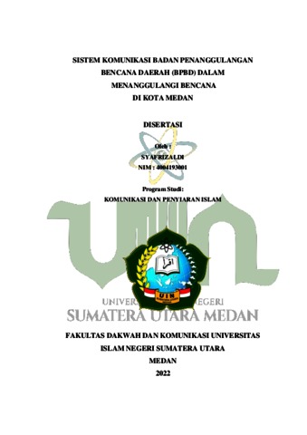 Syafrizaldi, Syafrizaldi (2022) Sistem Komunikasi Badan Penanggulangan Bencana Daerah (BPBD) Dalam Menanggulangi Bencana di Kota Medan. Doctoral thesis, Universitas Islam Negeri Sumatera Utara.