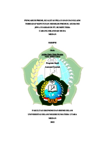 Siregar, Aristo Zaky Zein (2022) Pengaruh Premi, Kualitas Pelayanan dan Klaim Terhadap Keputusan Memilih Produk Asuransi Jiwa Syariah di PT.Bumiputera Cabang Iskandar Muda Medan. Skripsi thesis, Universitas Islam Negeri Sumatera Utara.