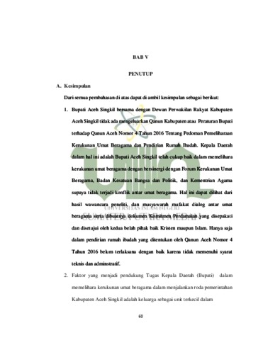 Implementasi Tugas Kepala Daerah Dalam Memelihara Kerukunan Umat Beragama Berdasarkan Qanun Aceh Nomor 4 Tahun 2016 Tentang Pedoman Pemeliharaan Kerukunan Umat Beragama dan Pendirian Tempat Ibadah Dalam Perspektif Fiqh Siyasah (Studi Kasus Kabupaten Aceh Singkil)