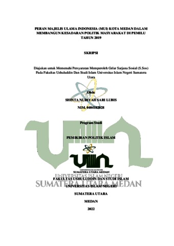 Lubis, Shinta Nuriyah Sari (2022) Peran Majelis Ulama Indonesia (MUI) Kota Medan Dalam Membangun Kesadaran Politik Masyarakat di Pemilu Tahun 2019. Skripsi thesis, Universitas Islam Negeri Sumatera Utara.