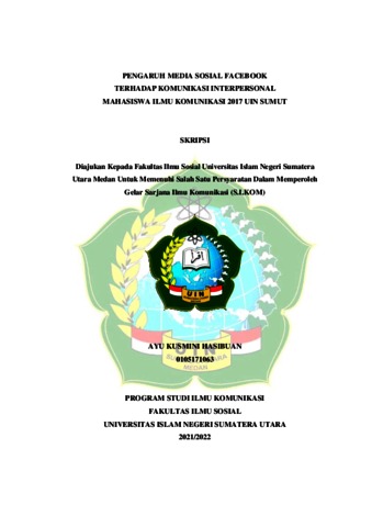 Hasibuan, Ayu Kusmini (2022) Pengaruh Media Sosial Facebook Terhadap Komunikasi Interpersonal Mahasiswa Ilmu Komunikasi 2017 Uin Sumut. Skripsi thesis, Universitas Islam Negeri Sumatera Utara.