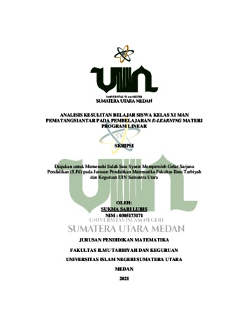 Lubis, Sukma Sari (2021) Analisis Kesulitan Belajar Siswa Kelas XI MAN Pematangsiantar Pada Pembelajaran E-Learning Materi Program Linear. Skripsi thesis, Universitas Islam Negeri Sumatera Utara.